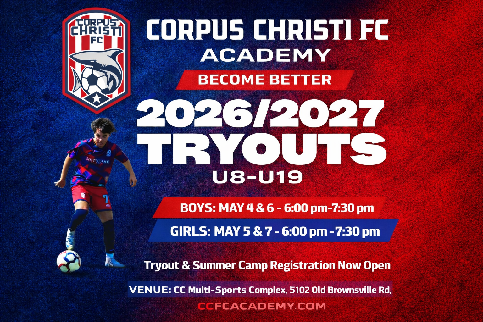 Corpus Christi FC Academy- Sharks Academy 2026/2027 Tryout